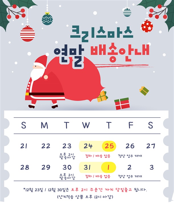 · 구매자가 배송지 주소를 잘못 기입한 경우, 반송/재발송 모두 택배비를 부담하셔야 합니다. (꼭 정확한 주소를 기입해 주세요)